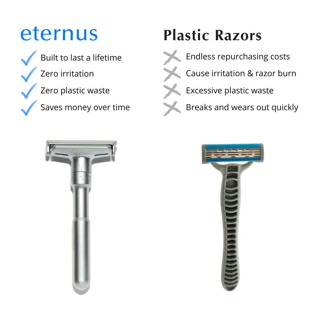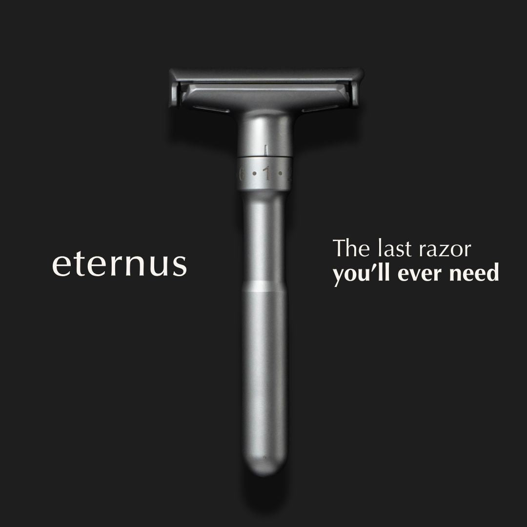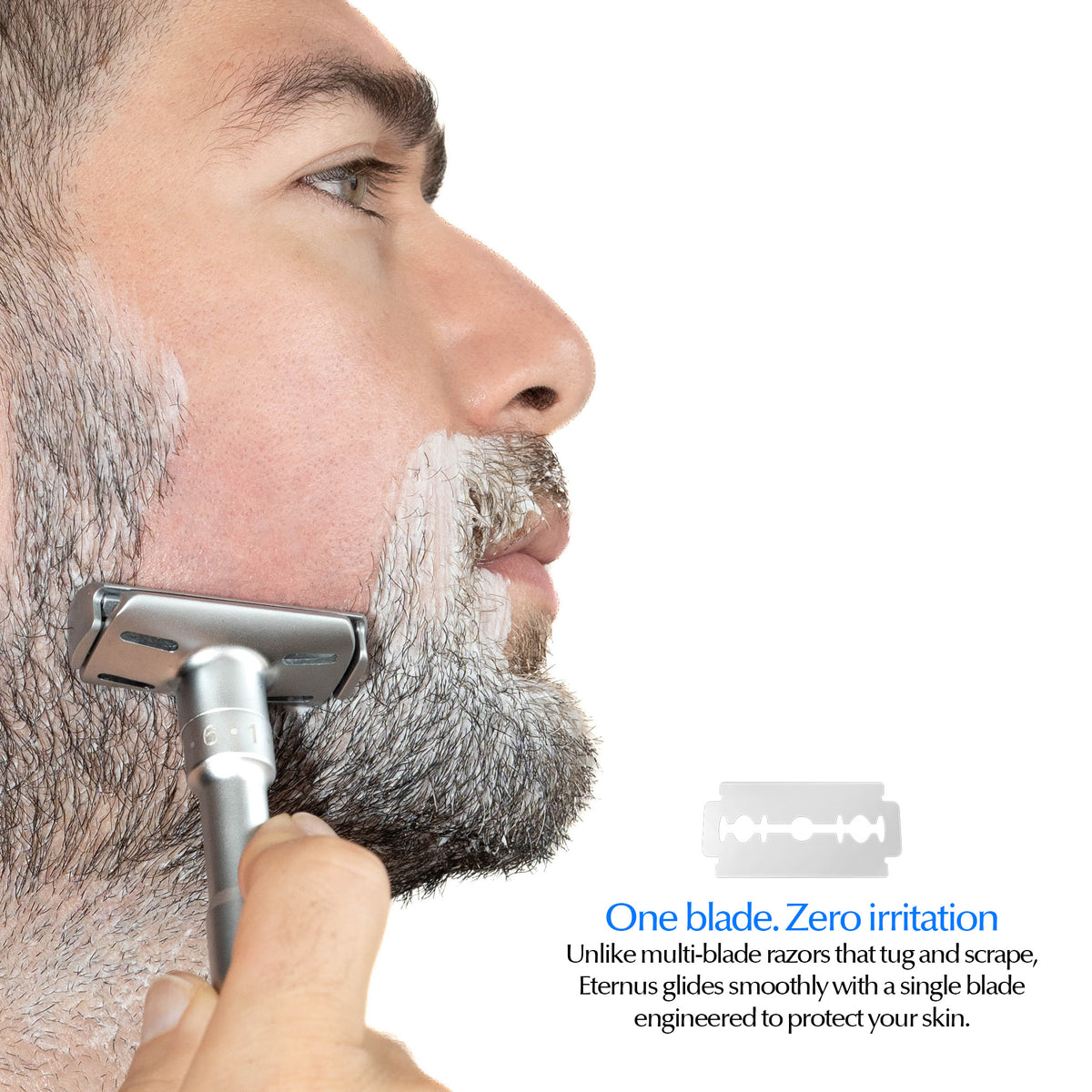 Precision-engineered metal razor with dial control for a close, comfortable shave.