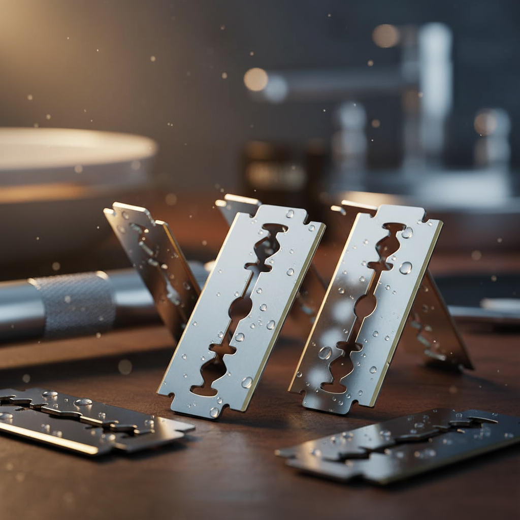 50 Platinum-coated double edge razor blades designed for both men and women. Crafted for smoothness, precision, and durability.